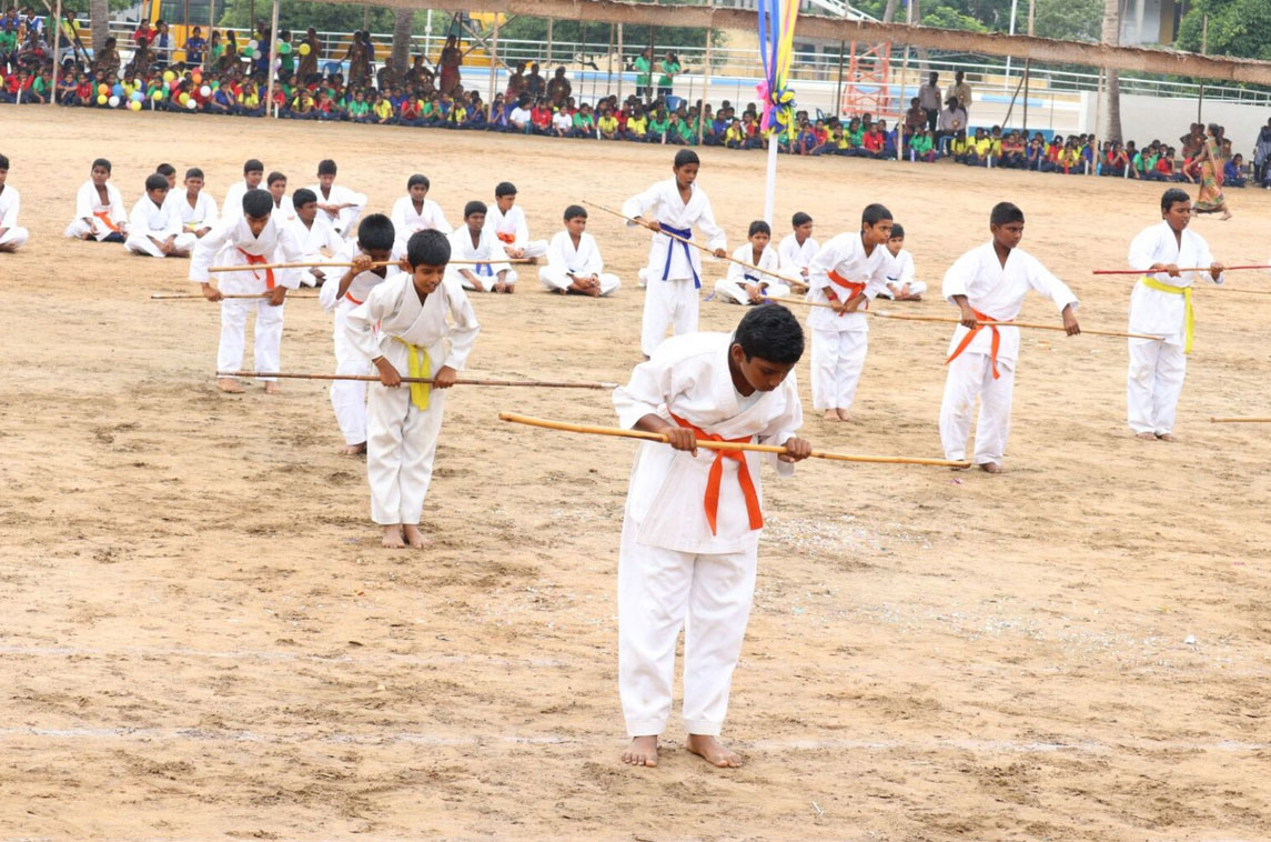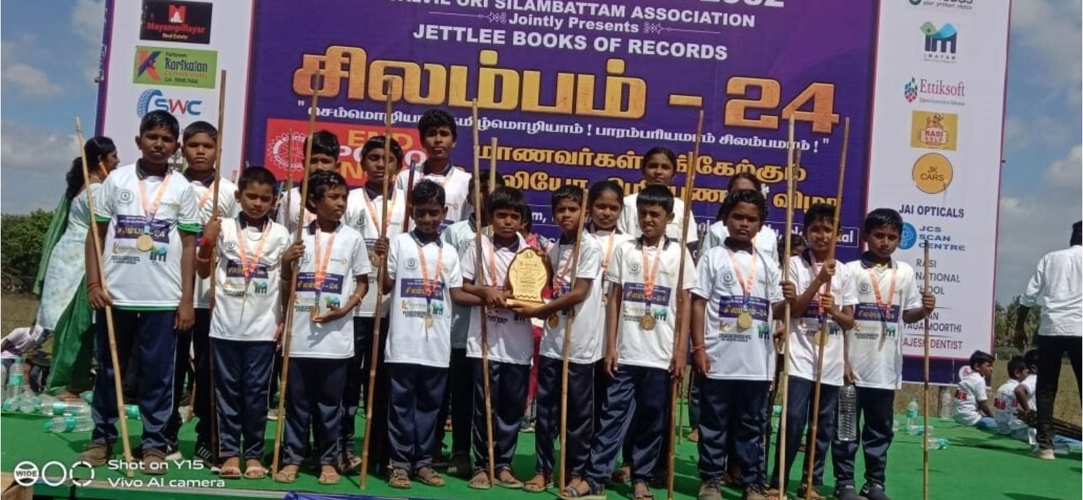 It is a philosophy of life. It is designed for defense and not offense.It is a way to bring your mind,and body into focus. Silambam competition was conducted at Muthayammal Polytechnic College,Rasipuram. Our school students 24 were participated. In that 11 students placed in good result and they got certificate and Trophy.